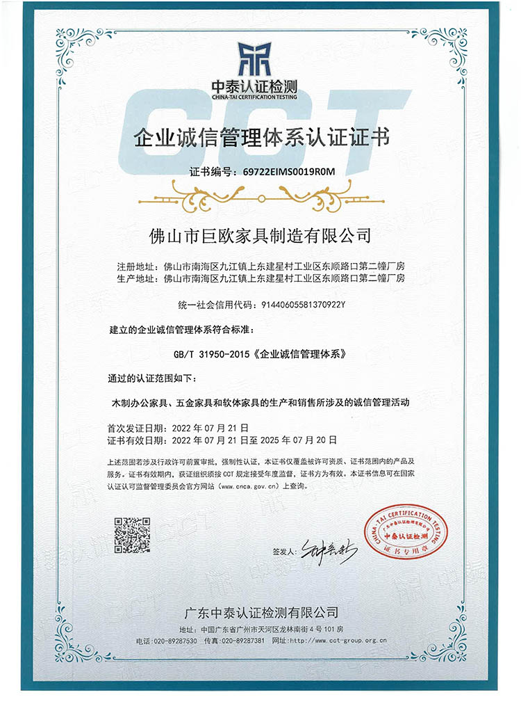 佛山市巨歐家具有限公司一是家從事現代板式辦公家具的研發、生產、銷售、服務和外貿出口以及品牌經營為一體的實業公司,是一家致力于辦公家具、學校家具、酒店家具、等多元化服務領域中具有高度專業性的現代化辦公服務行業領跑者。